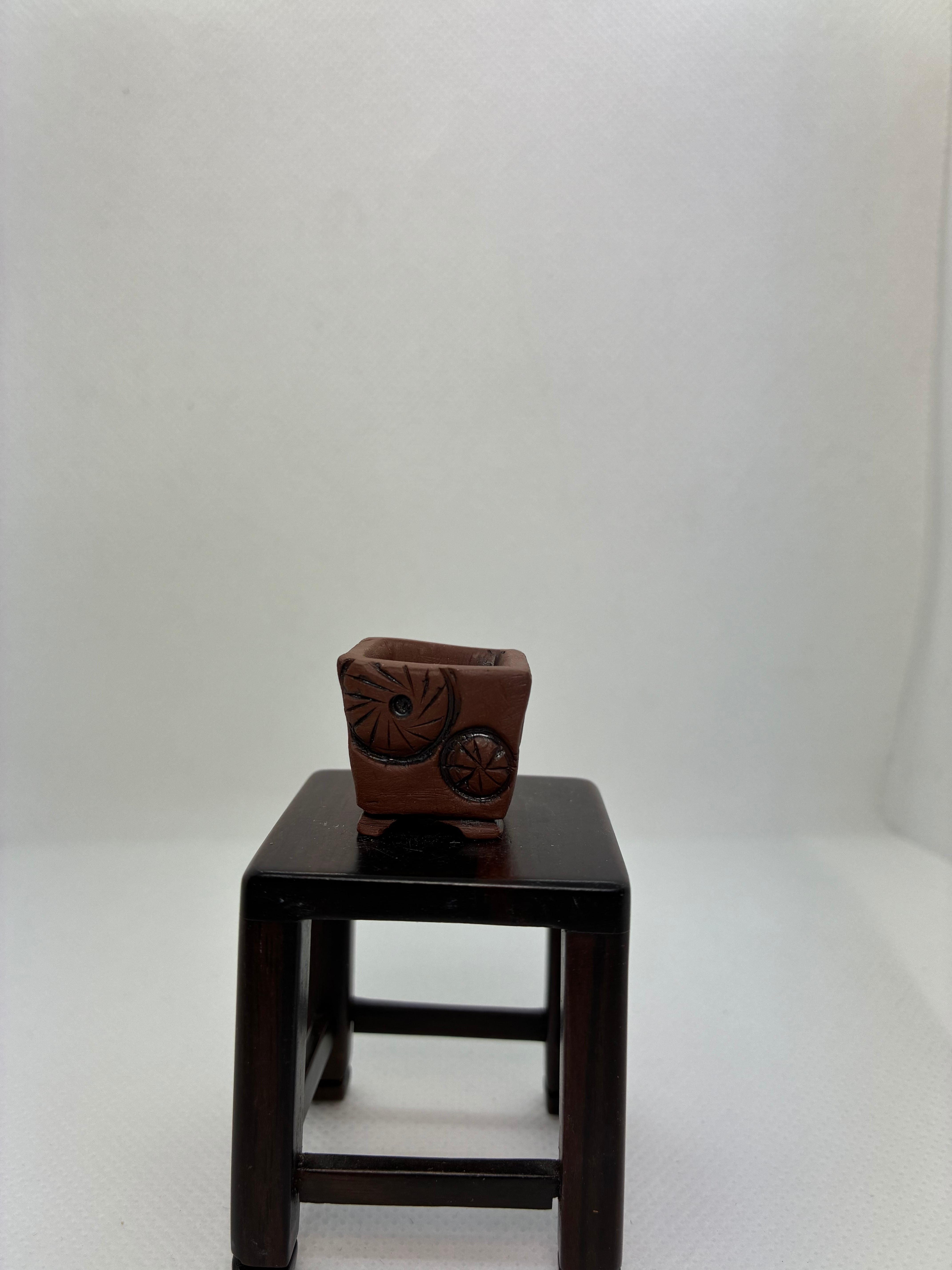 焼き締め鉢になりますボディーのところに彫刻刀て模様を入れて落款もボディーに入れてありますきめ細かい陶土200メッシュを使用してアンティーク調に仕上げておりますサイズは外径2センチ高さ2センチです