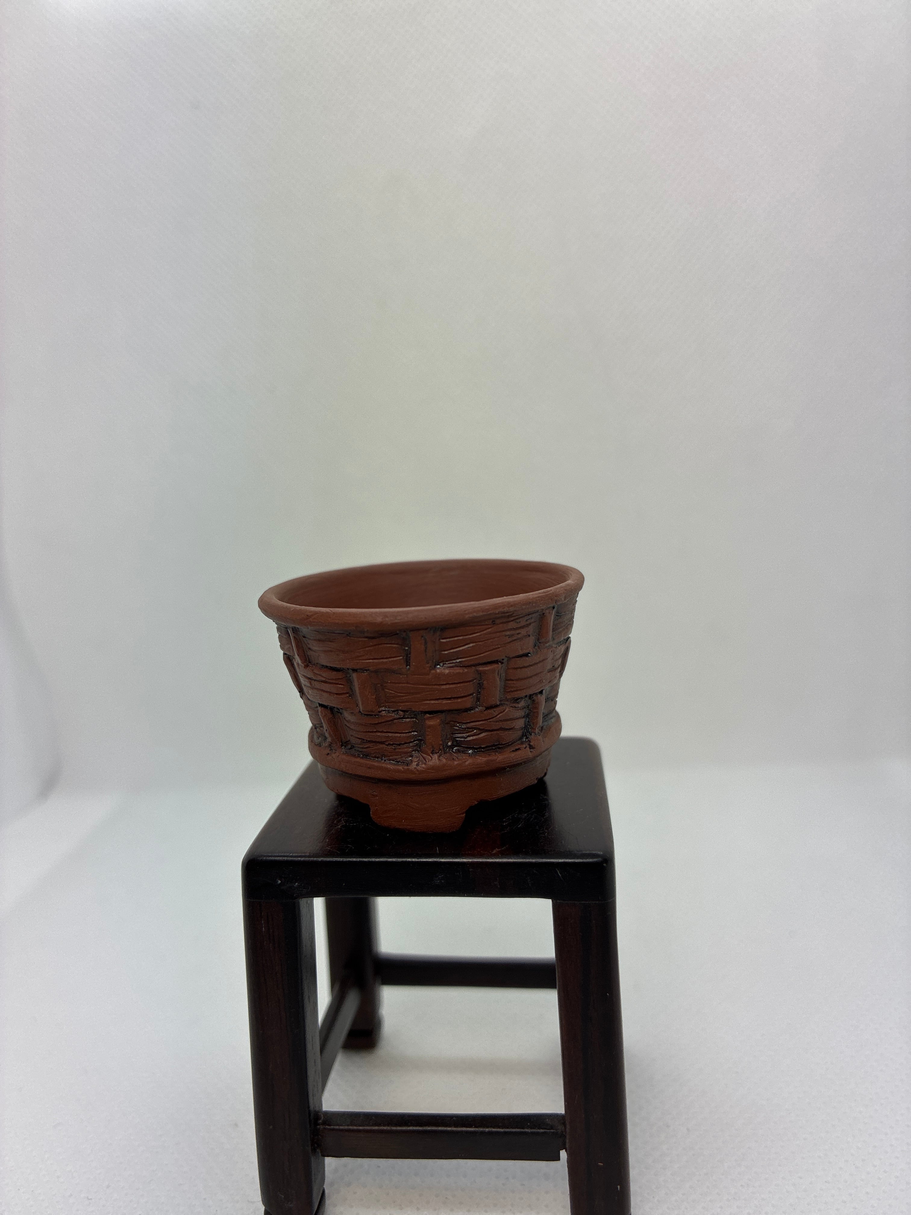 焼き締め鉢になりますボディーには籠のように彫刻刀で模様をいれて仕上げております陶土はきめ細かい200メッシュを使用しアンティーク調に仕上げております、サイズは外径3.6センチ高さ2.5センチです