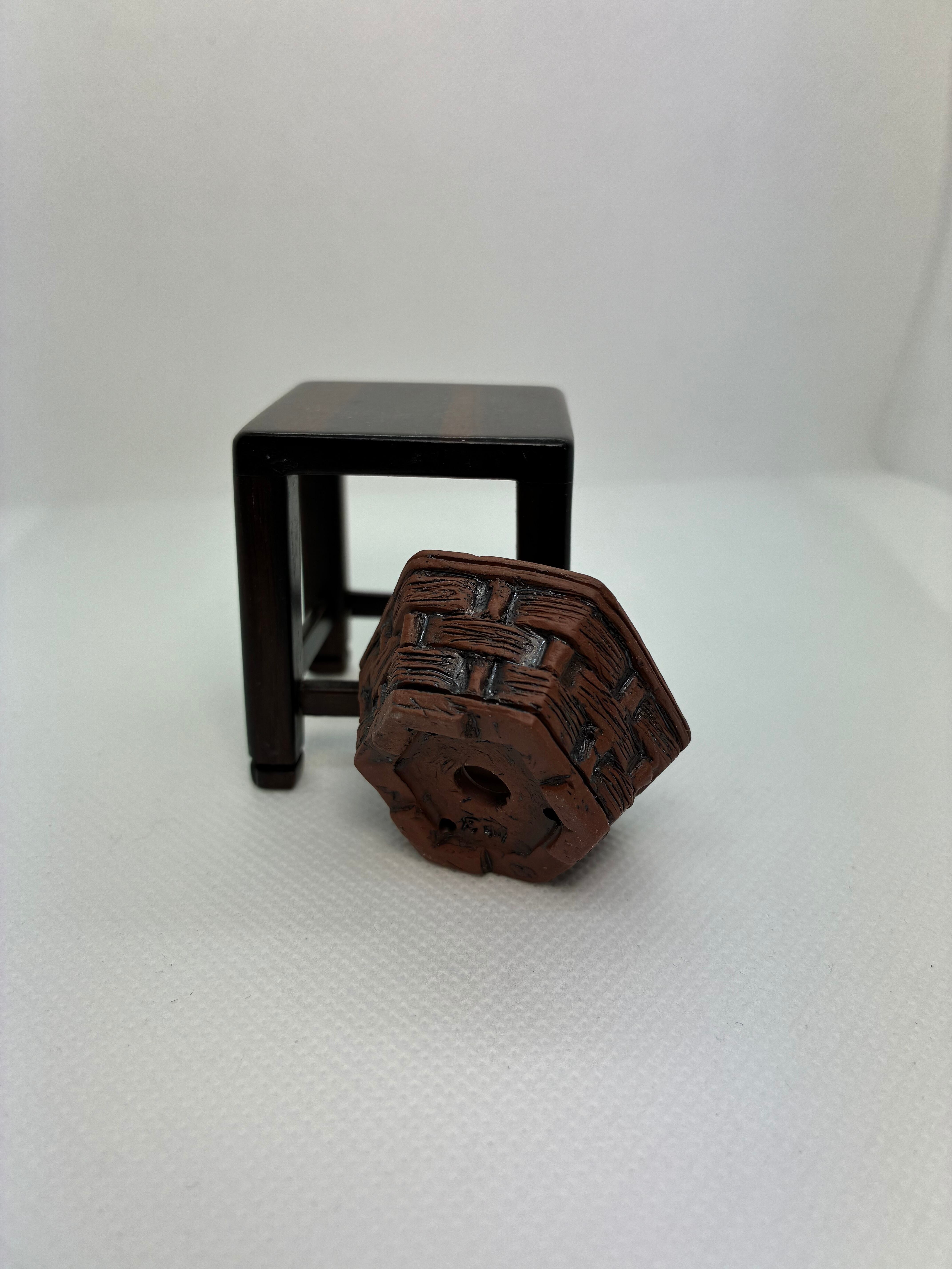 焼き締め鉢になりますボディーのところは彫刻刀などで籠のような模様を彫っております陶土はきめ細かい200メッシュを使用してアンティーク調に仕上げておりますサイズは外径3.7センチ高さ1.7センチです