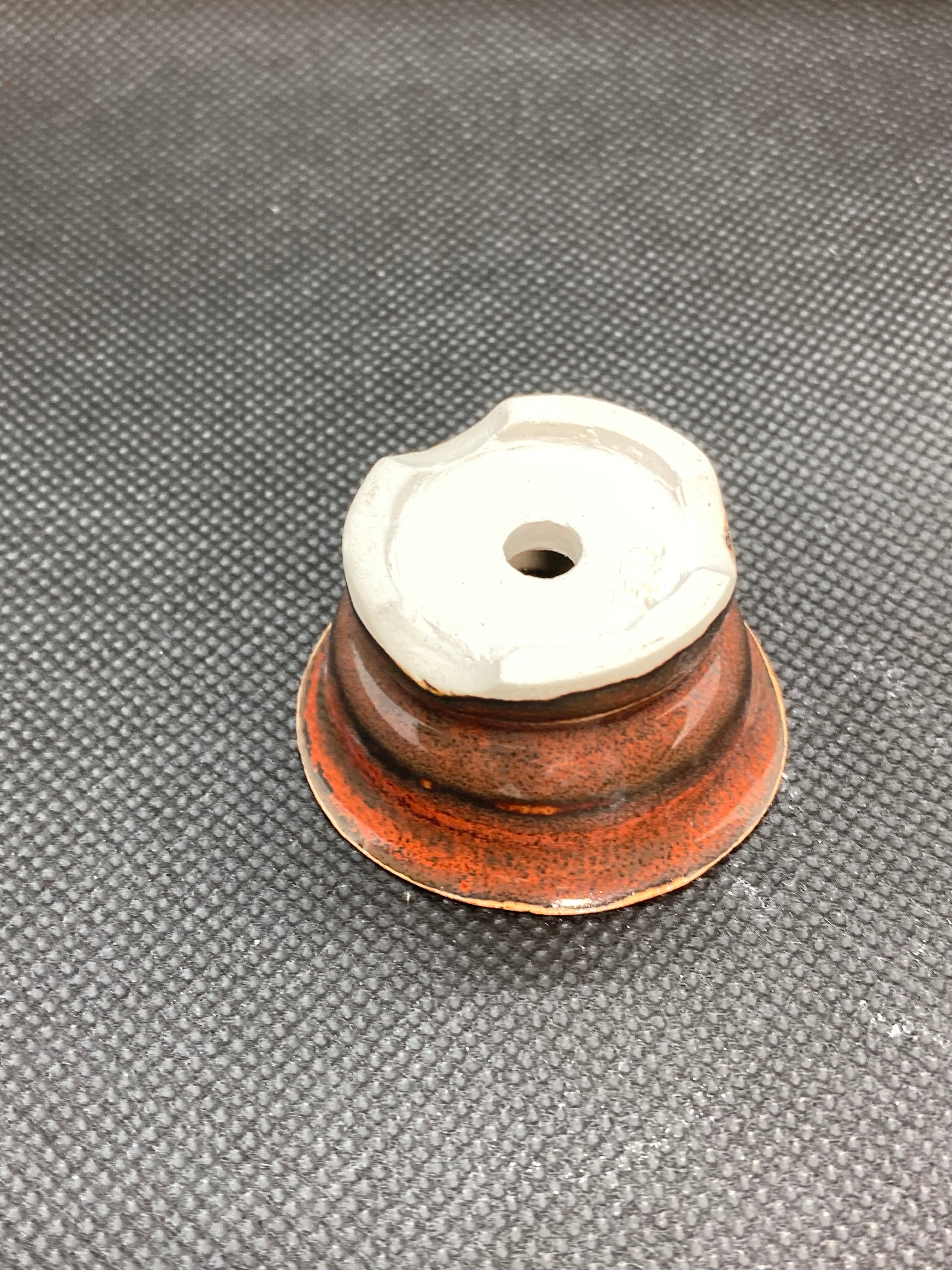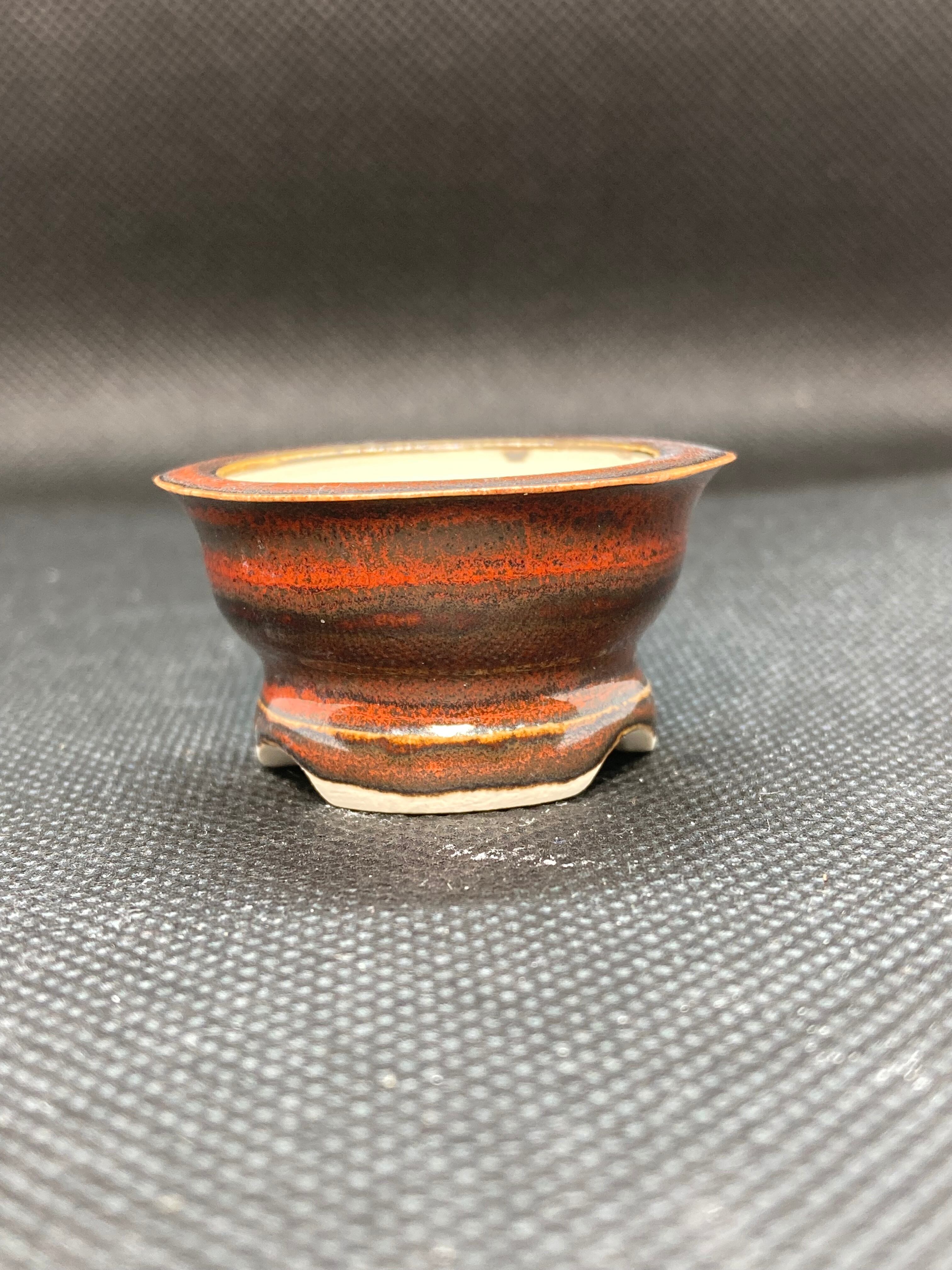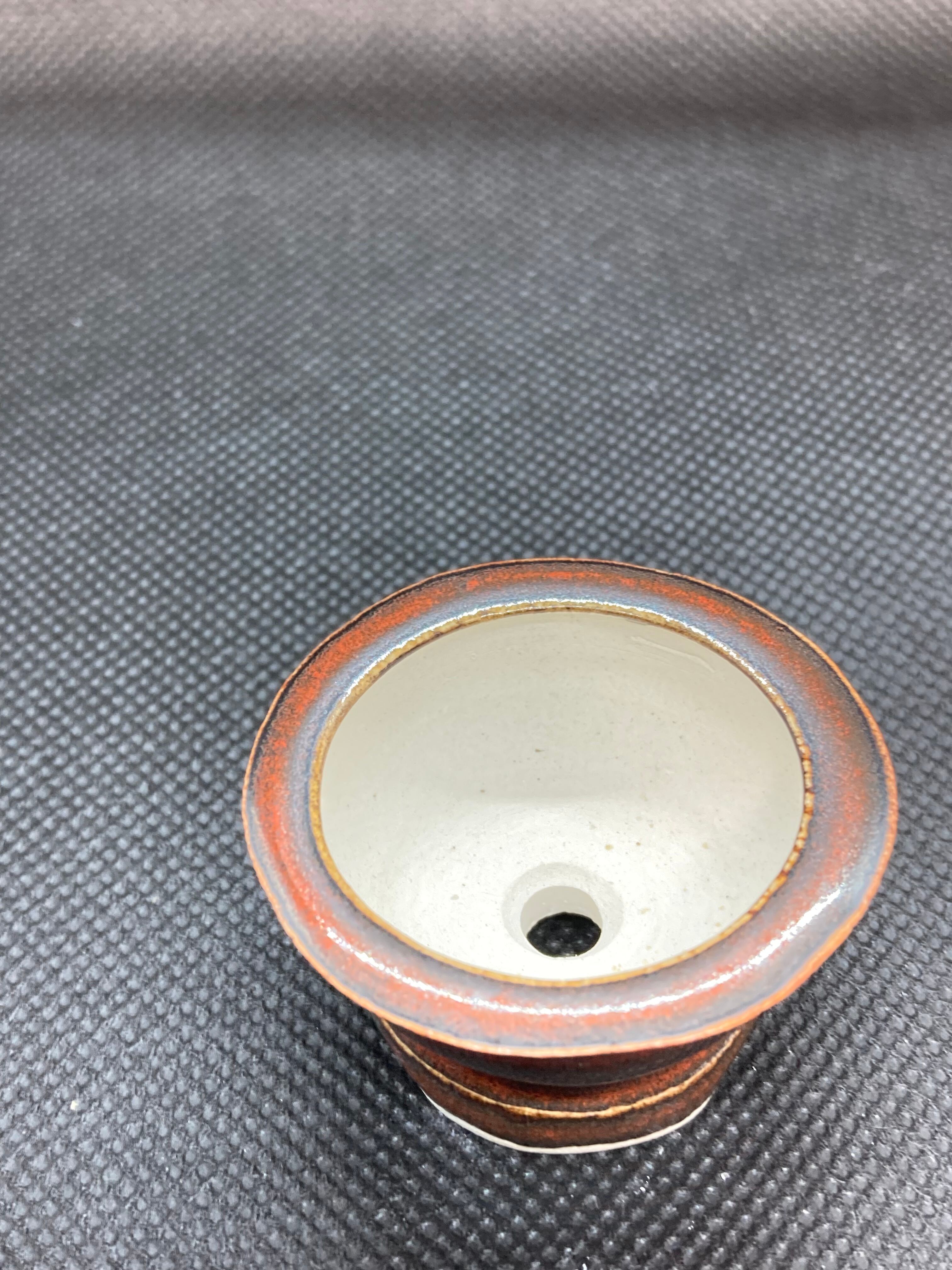 ボディのところに変化を付けて作陶した丸鉢で釉薬の変化も表情に出ており実物や花物などに合わせやすいかと思います。サイズは外径4.0センチ