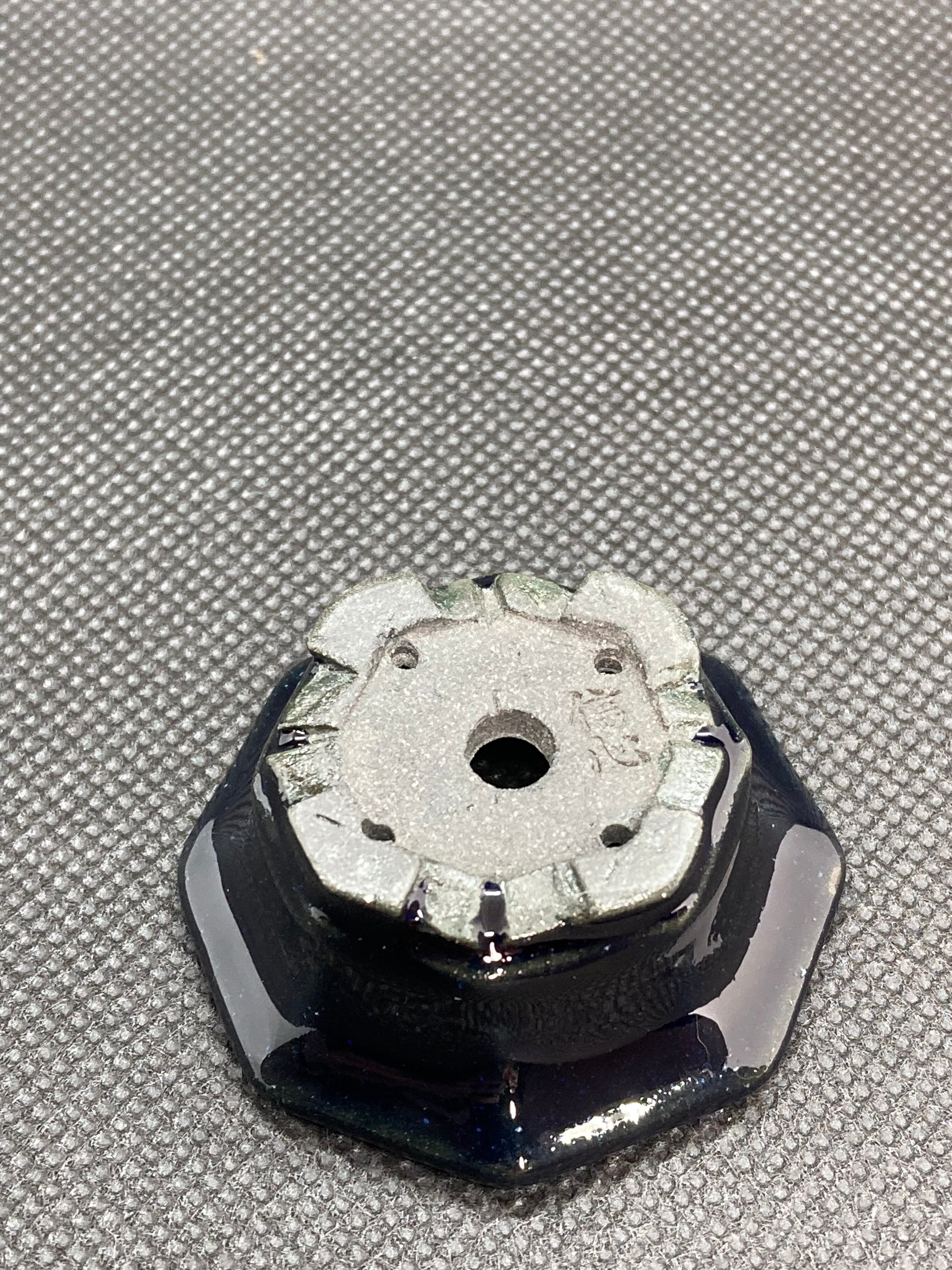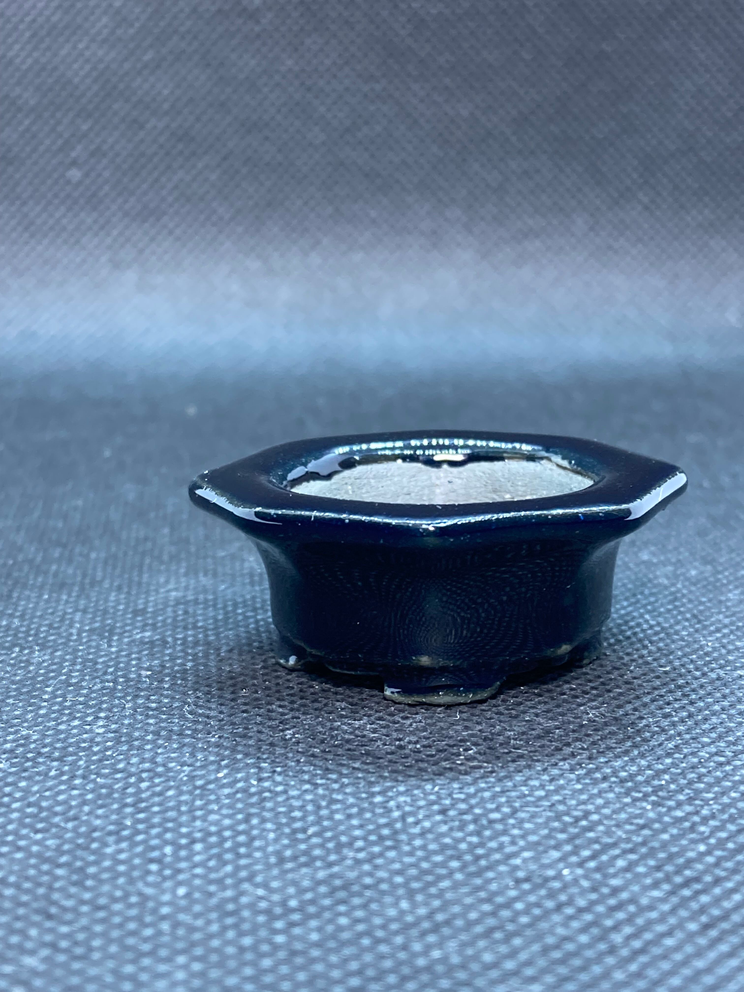 天広八角鉢のサイズは外径4.2センチ 高さ1.7センチです。色は黒に近い紺色なので見た目は黒に見えます。樹種はいろいろ合わせやすいかと思います。