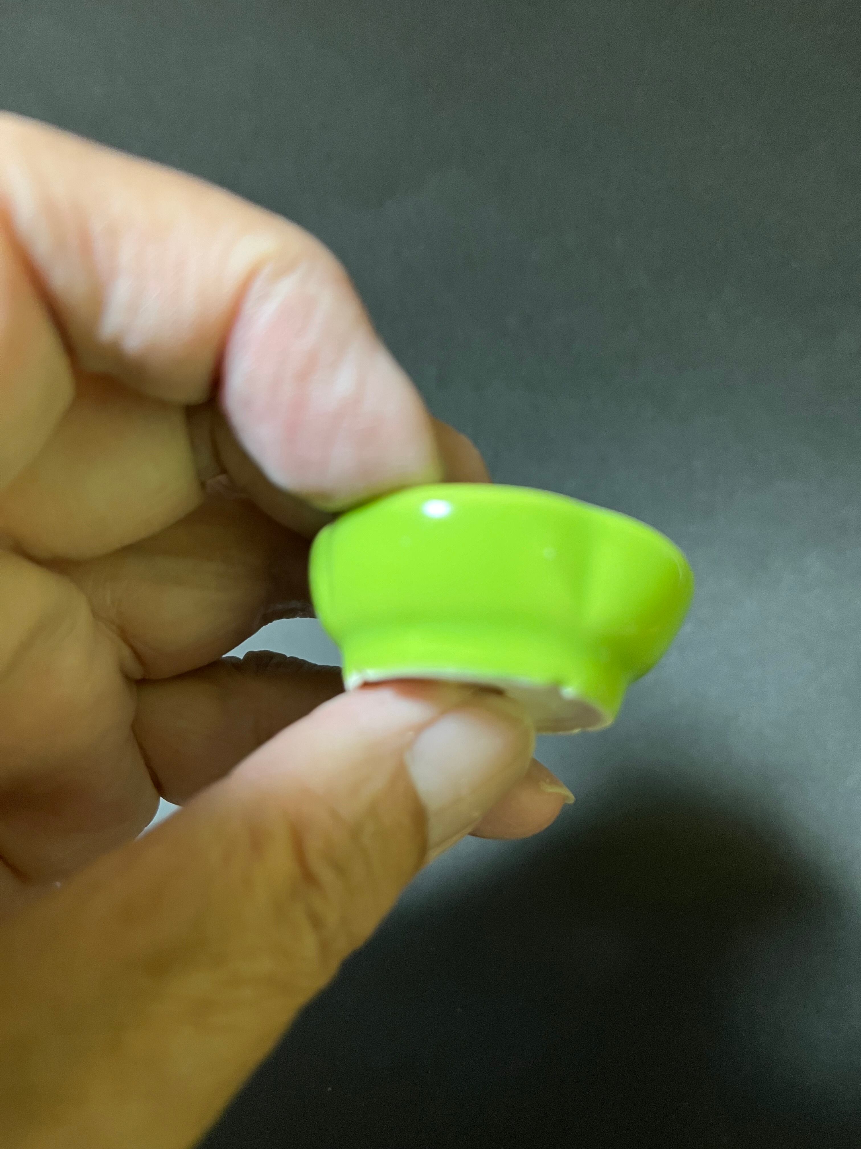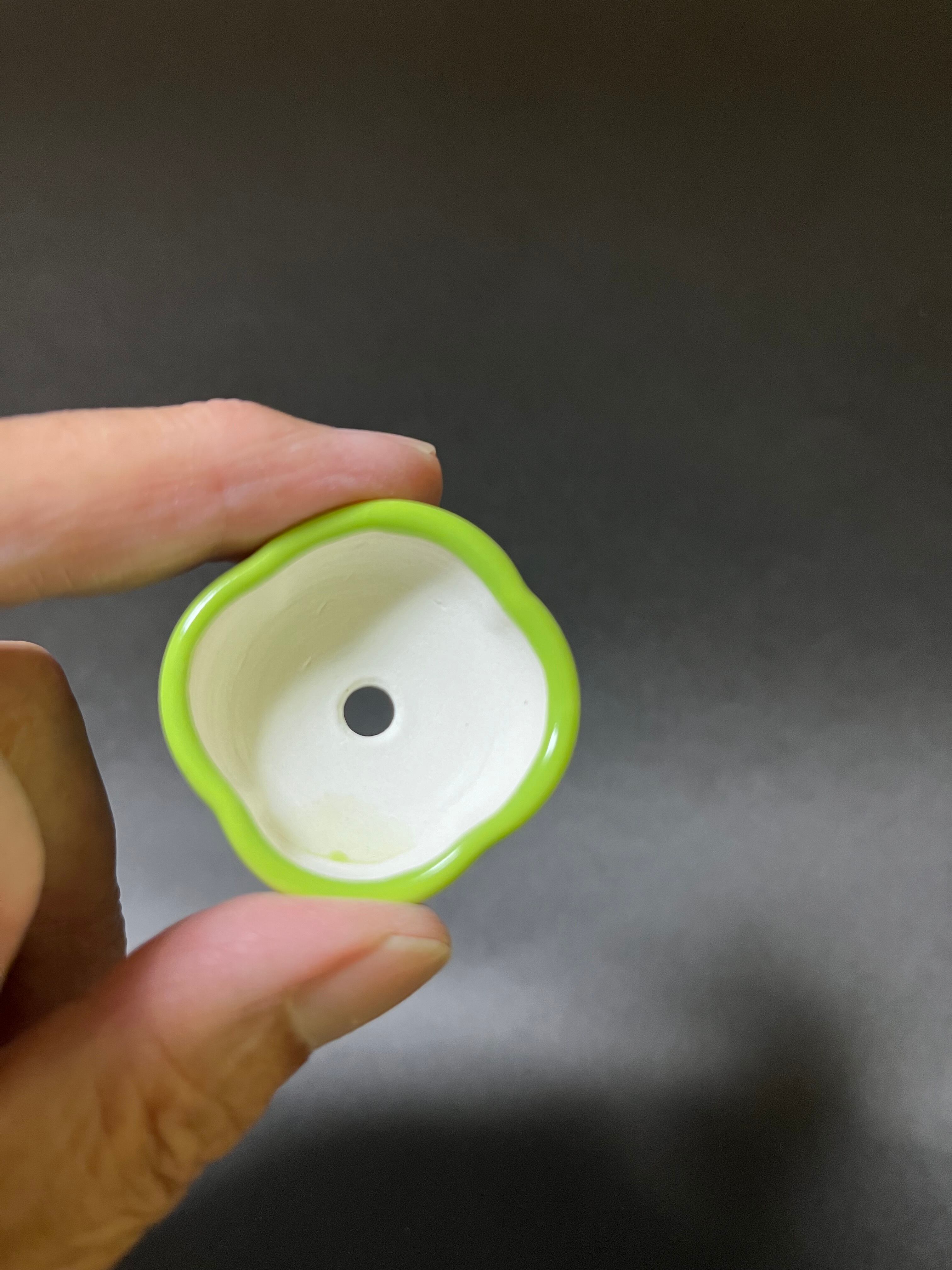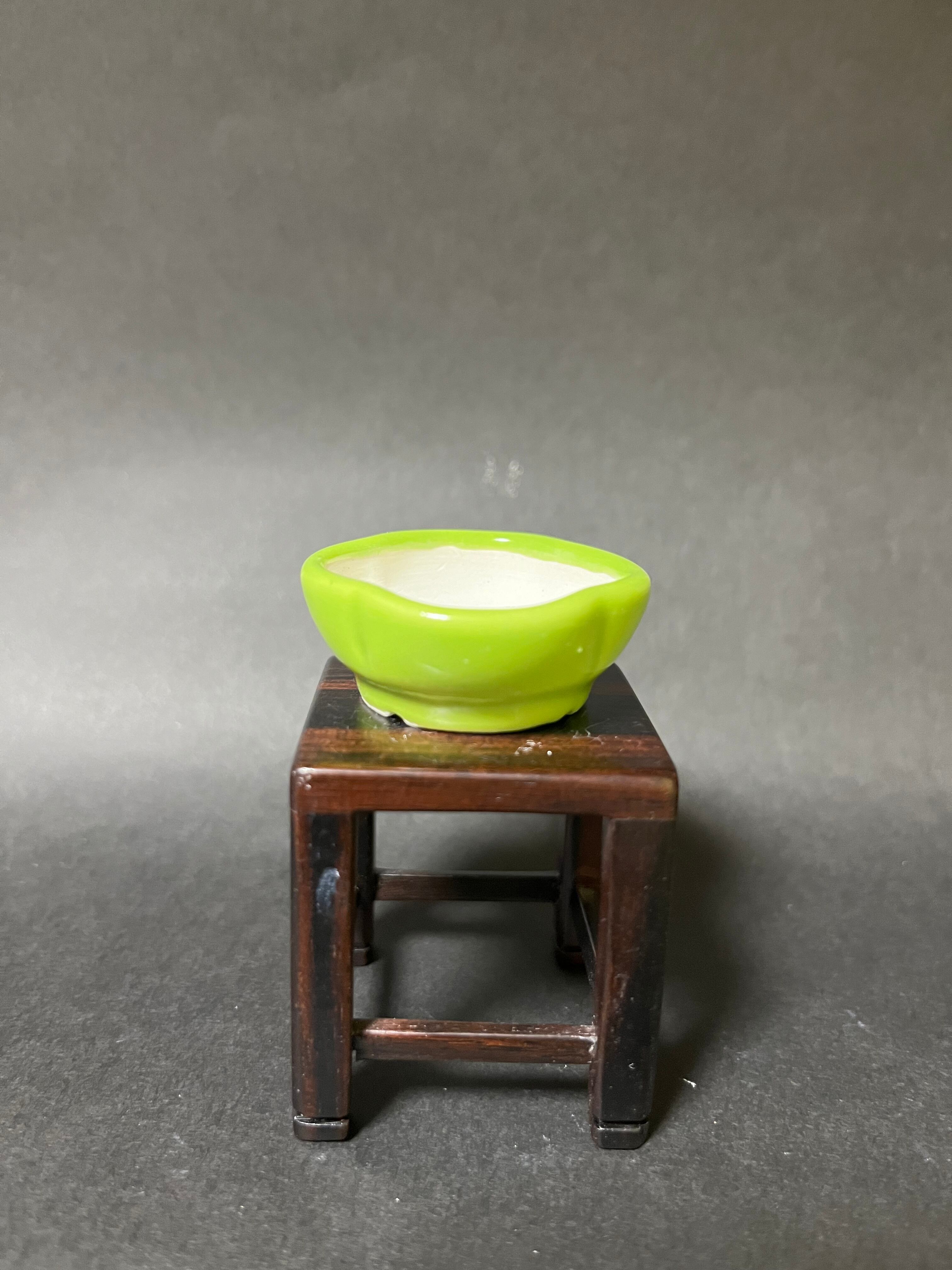 サイズは外径4センチ 高さ1.5センチです、ヒワ釉薬の綺麗ないろが出ています、樹種は松柏以外
