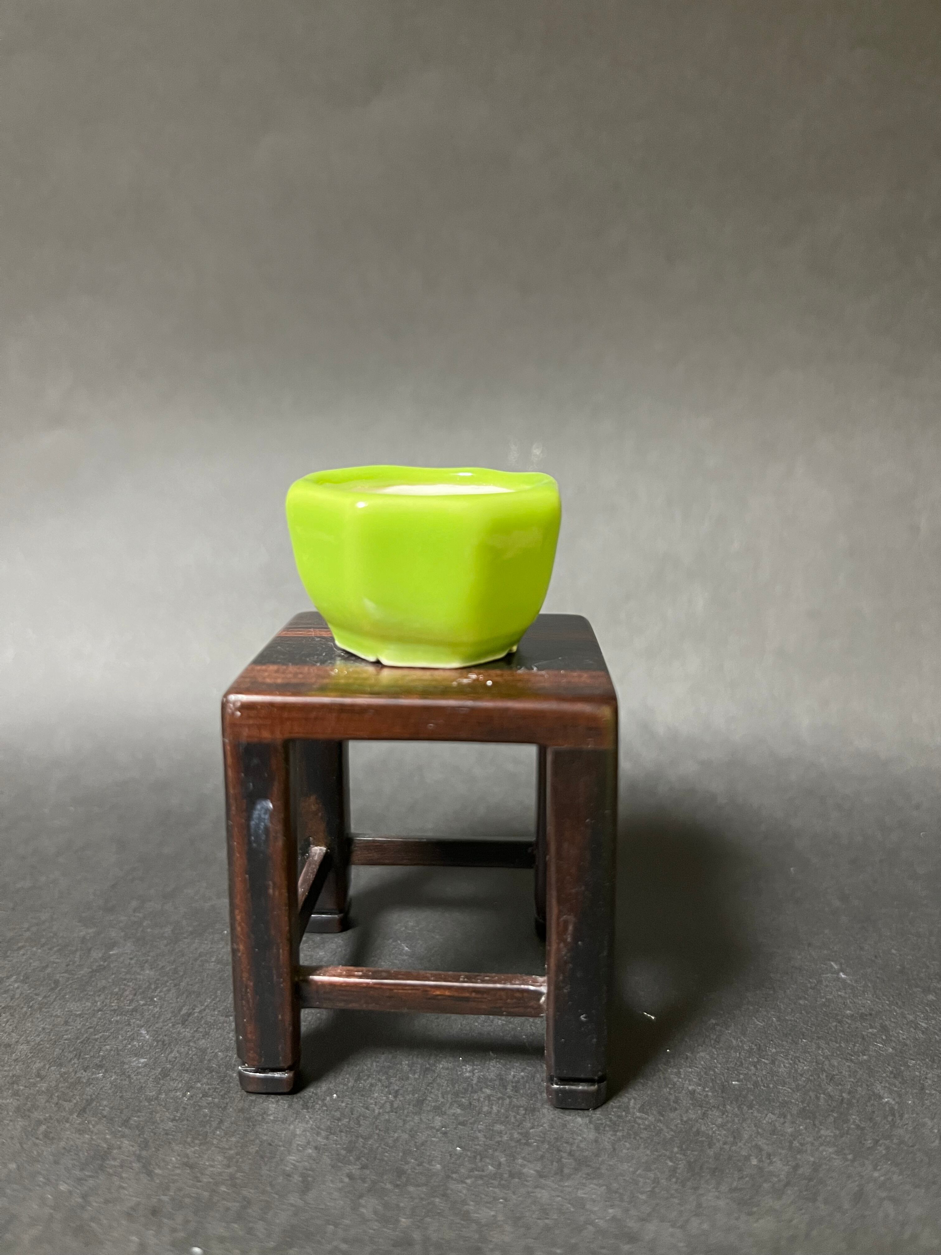 釉薬はヒワ釉薬の綺麗ないろがでています、樹は花物や実物などを合わせて楽しめるかと思います。