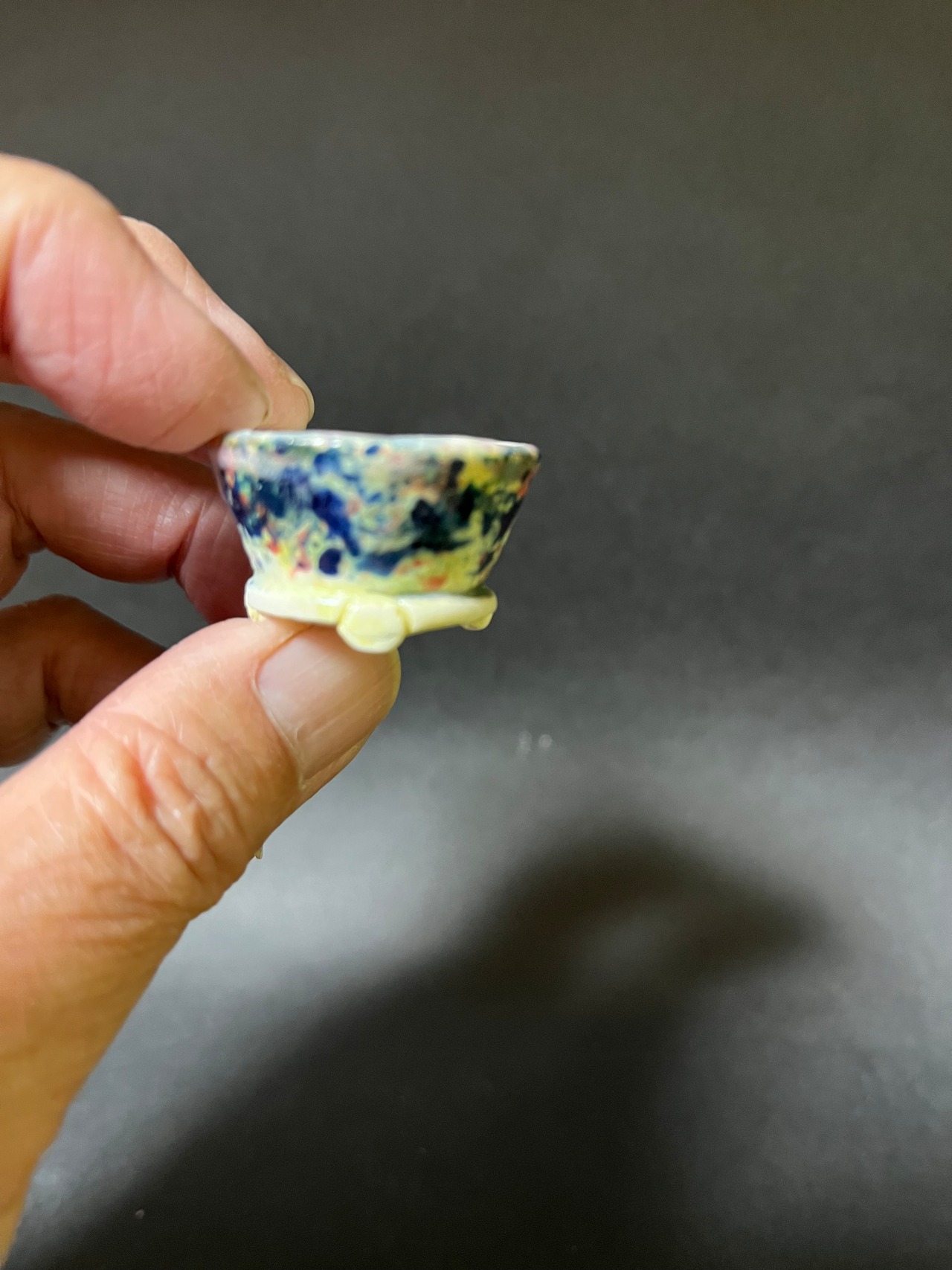 何色かの色を使って模様を入れました、花物実物などを合わせて楽しめるかと思います。