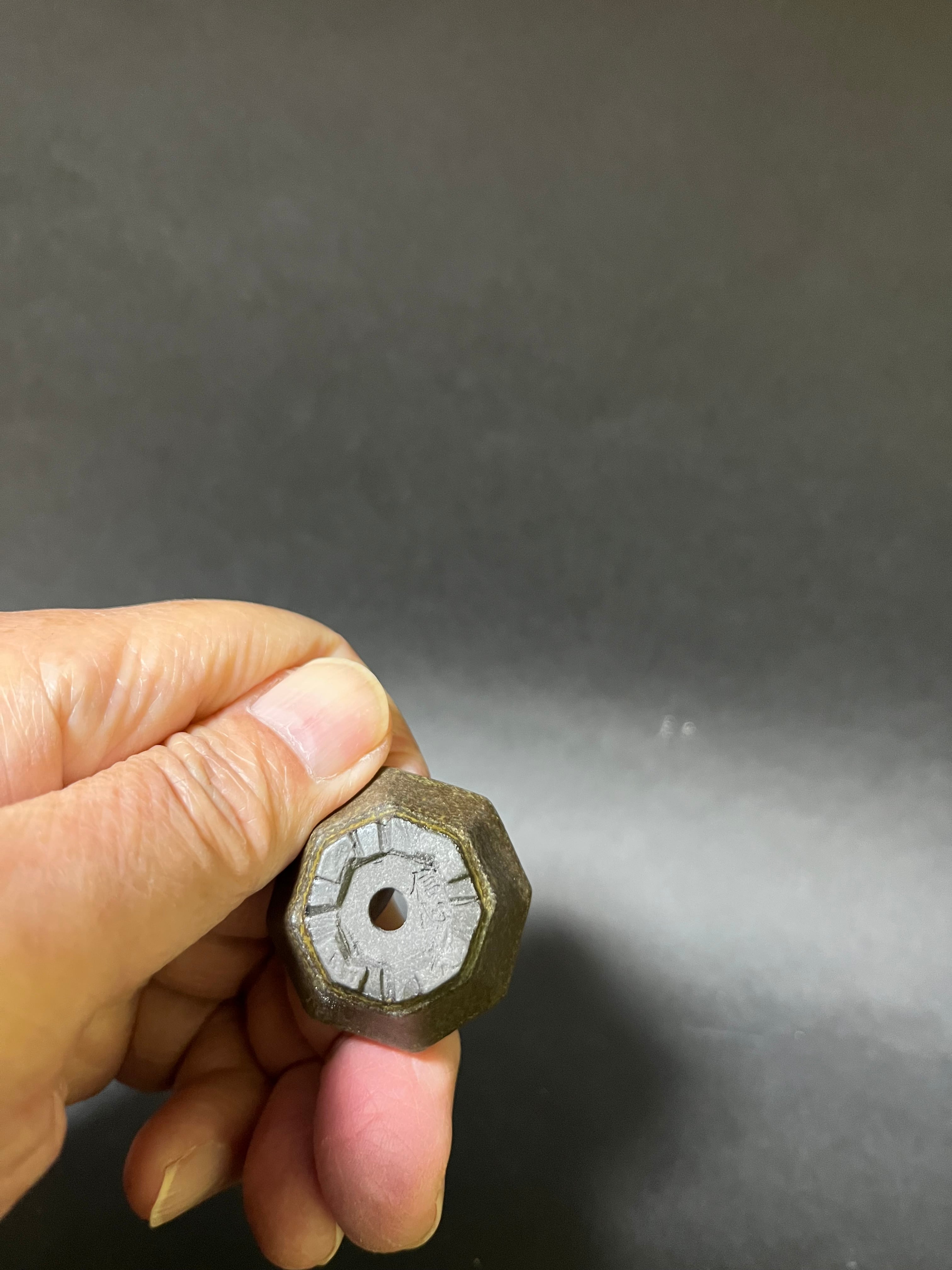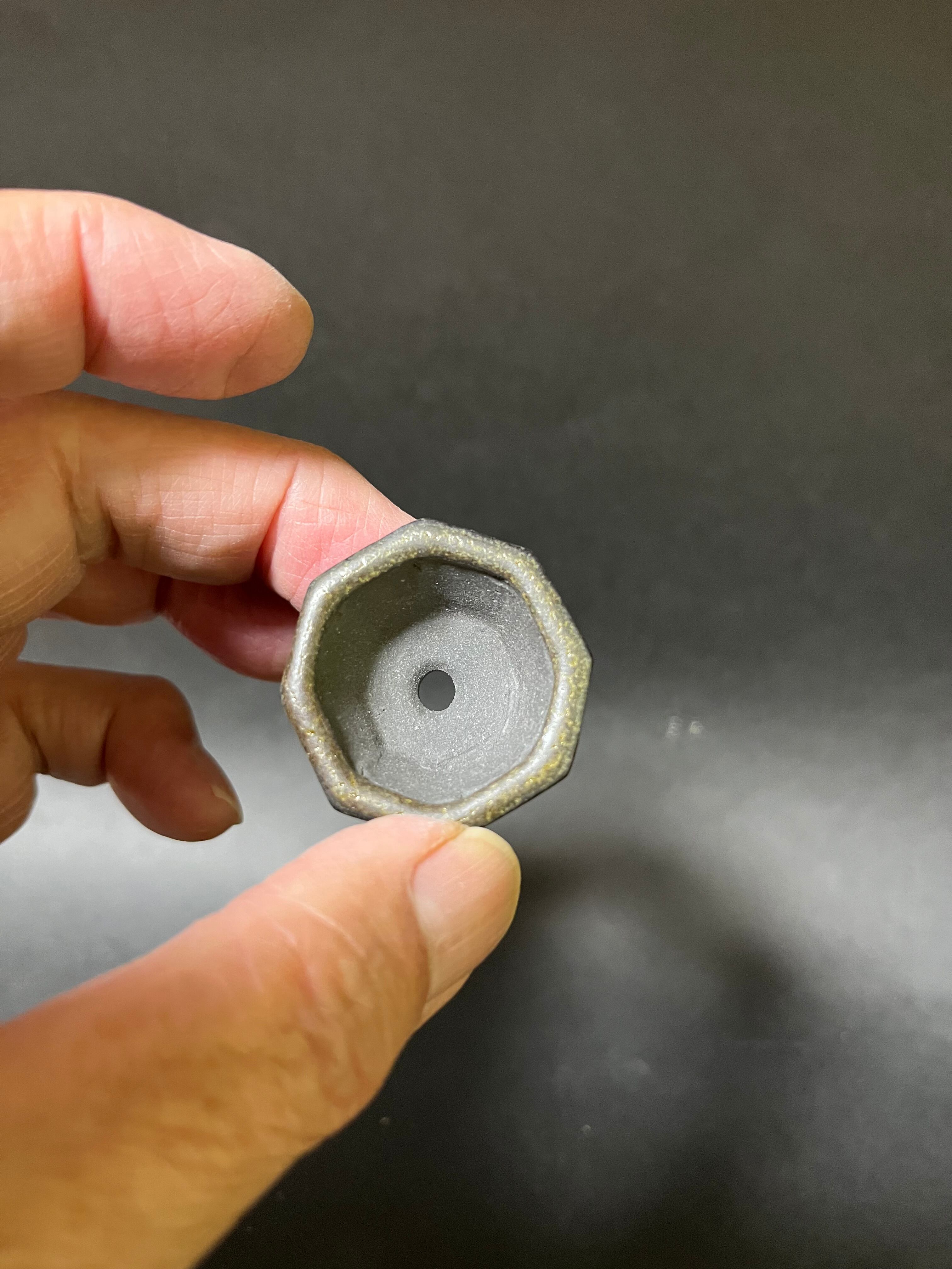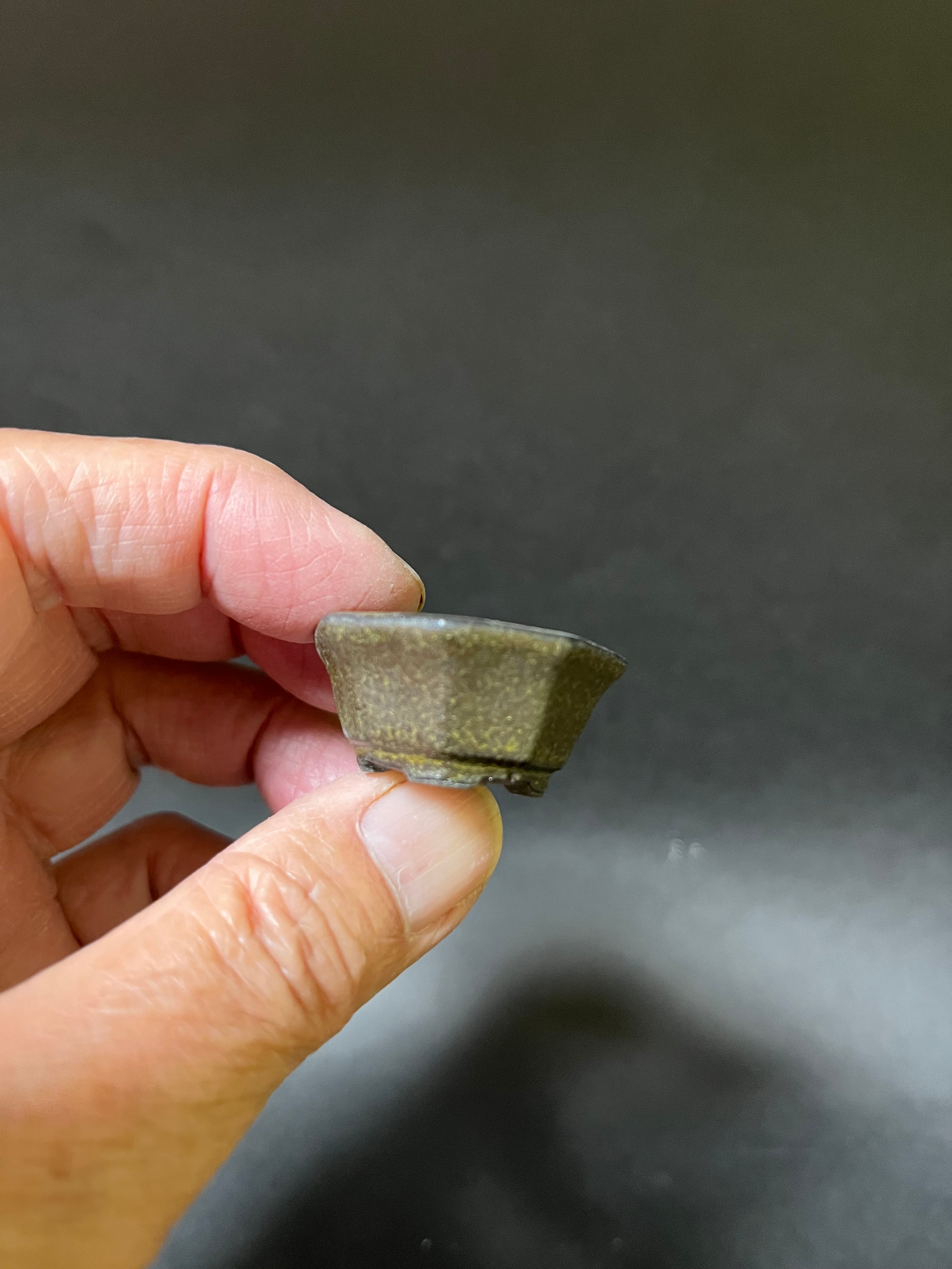 八角鉢のサイズは外径3.2センチ 高さ1.6センチです、アボガドのような深い色目になっております